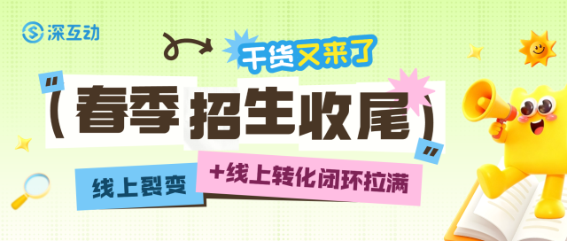 【深互动营销学院】8月份开展线上活动,目的就是为9月开学招生做铺垫,在活动主题策划上、在活动玩法规则上,围绕9月开学做设计,达到从线上传播引流、再延续到线下转化完整周期的闭环。