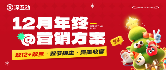 【深互动营销学院】精选10个营销活动方案,灵活适配不同需求:既可聚焦双12、圣诞、元旦单个节点精准发力,也可串联多个节点打造全月主题活动,全方位助力机构年末业绩冲刺与口碑沉淀。