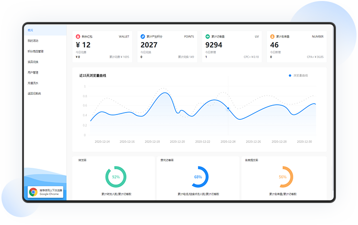 代言人主题,以有效浏览+页面按钮点击作为任务,获取积分。积分兑换实物礼品引导传播,激活会员卡领礼唤醒高意向潜客